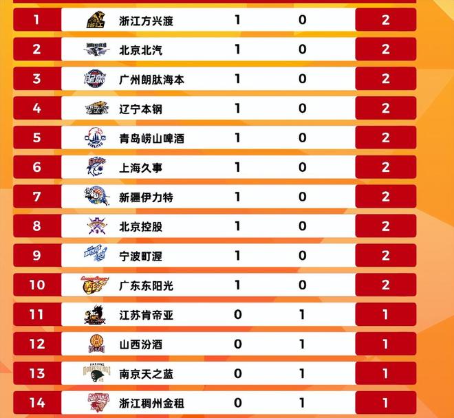 首轮10场比赛已经全部结束,最新积分榜排名如下:卫冕冠军广厦高居头名,北京紧随其后,广州位列第3,辽宁第4,青岛、上海、新疆、北控分列第5-第8,广东由于净胜分差距排名落后宁波排在第10。